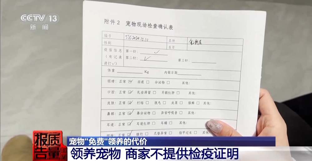 凭据《动物防疫法》,用于出售的动物正在售卖前,应得到检疫声明。而记者遵守消费者投诉的线索观察的三个都邑里的六家宠物认养馆,用于领养的宠物,都没有动物卫生监视部分出具的检疫声明。