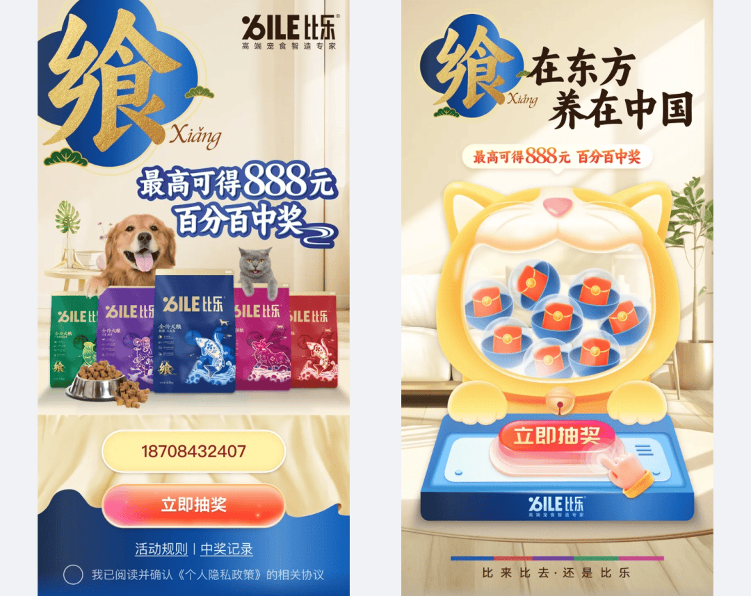 消费者凭什么购置这款产物?除了产物自身自带的中枢代价外,本次扫码100%中奖再次给到消费者购置情由。消费者购置比乐新品飨系列全价宠物粮后,开袋扫码即可领现金红包,同时运用“扫码即有机缘领888元现金红包”的大奖噱头,刺激消费者连续爆发复购。
