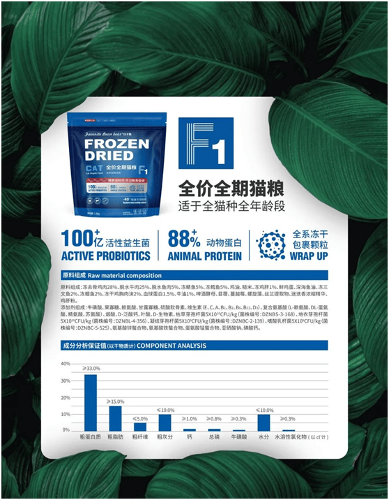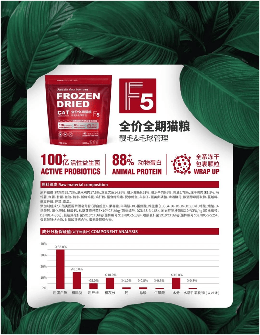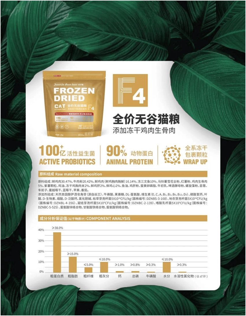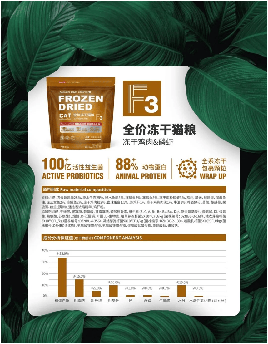 88%动物卵白:采用酶解鲜肉工艺,将大分子卵白分化为小肽,提拔摄取率的同时低重肠道担任。