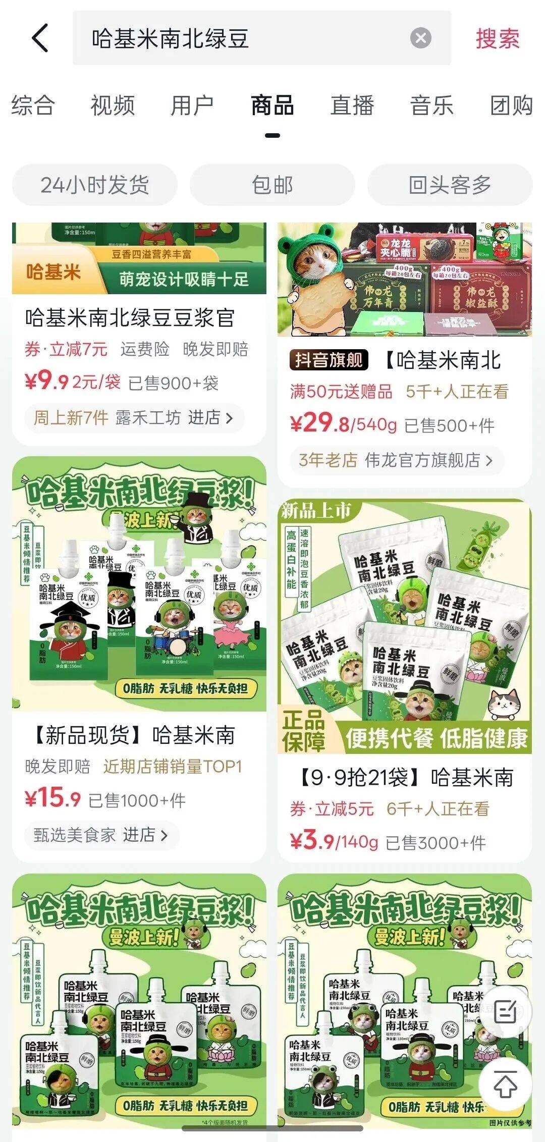 从时辰线看,这款产物险些是“踩着双十一道跑线”冲进群众视野的——本年11月11日,九阳豆业正式正在电商平台上线“哈基米南北绿豆豆乳植物饮料”。