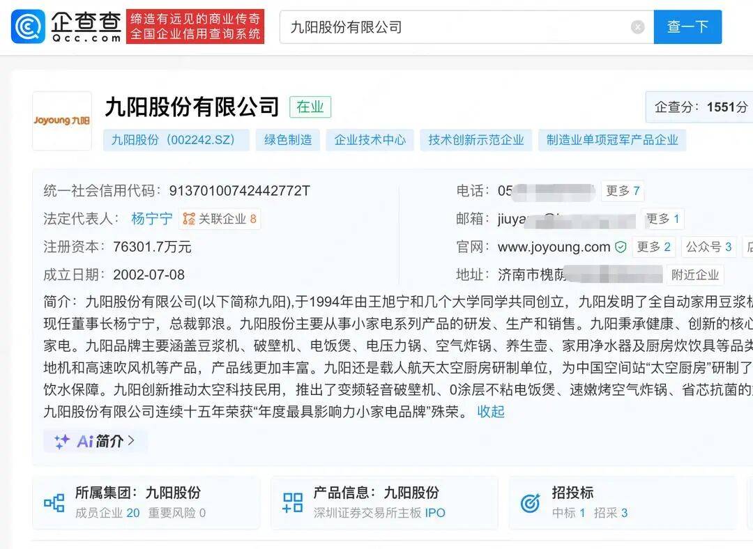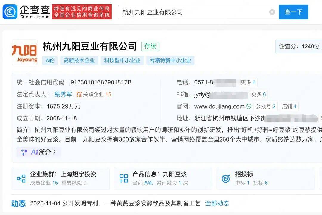 舆情倒逼之下,贸易让步。目前,九阳官方渠道已全线下架该产物。与此同时,官方火速揭橥告示,了了杭州九阳豆业有限公司虽为创始人王旭宁旗下企业,但与A股上市公司“九阳股份”并无直接股权相干。